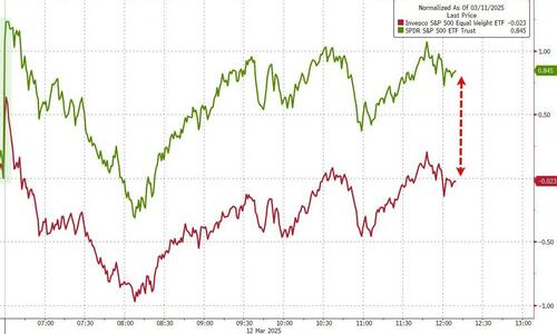 而这一点也能够从等权重标准普尔500指数的表现落后于大盘指数(市值加权)的对比中得以显现。