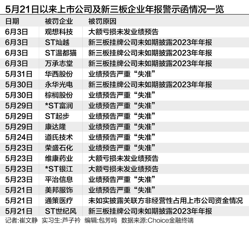 记者根据金融终端梳理发现,5月21日-6月3日的近半个月内,近20家公司因年报问题被出具警示函,因年报而被问询的上市公司更是超80家。